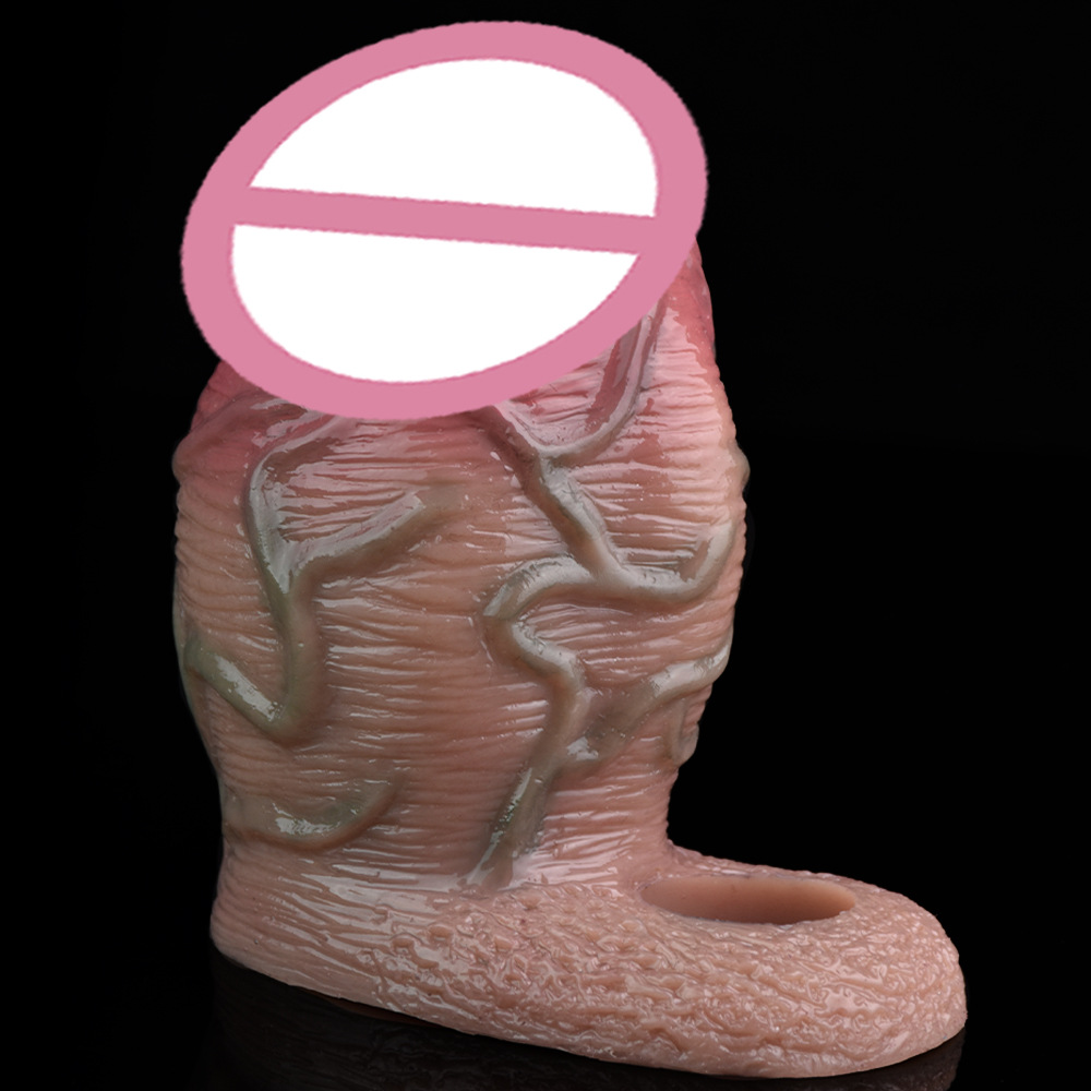 ปลอกเพิ่มขนาด ออกแบบสมจริงสูง เส้นเลือดโปน ระบบล็อกน้ำเชื้อ มีให้เลือกสีเนื้อและสีดำ วัสดุซิลิโคนแพลตินัม