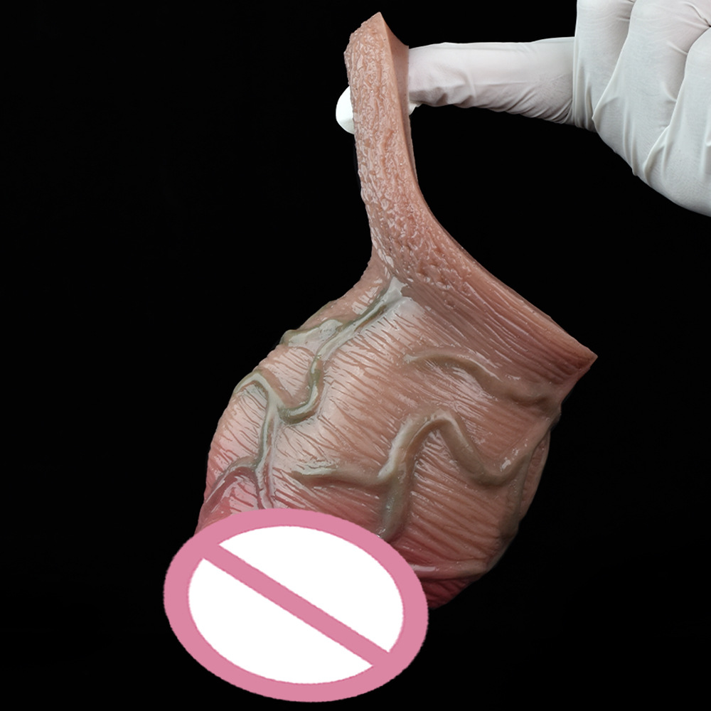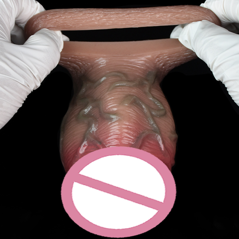 ออกแบบเลียนแบบอวัยวะเพศชายสมจริงสูง เส้นเลือดโปน ลายชัดเจน วัสดุซิลิโคนแพลตินัม นุ่มเด้ง ยืดหยุ่นดี บีบเล่นได้