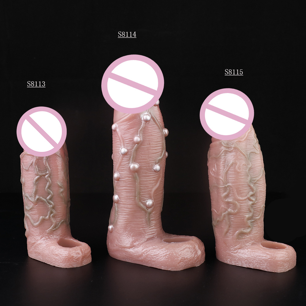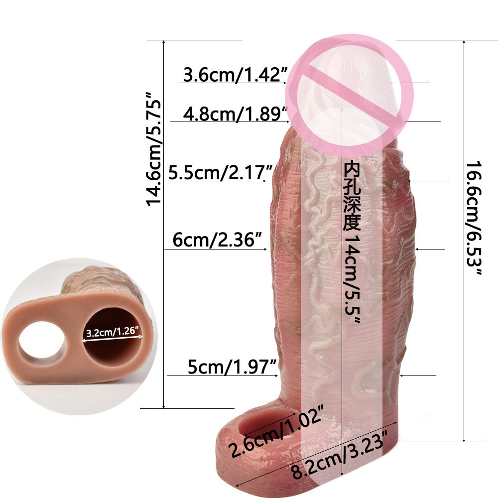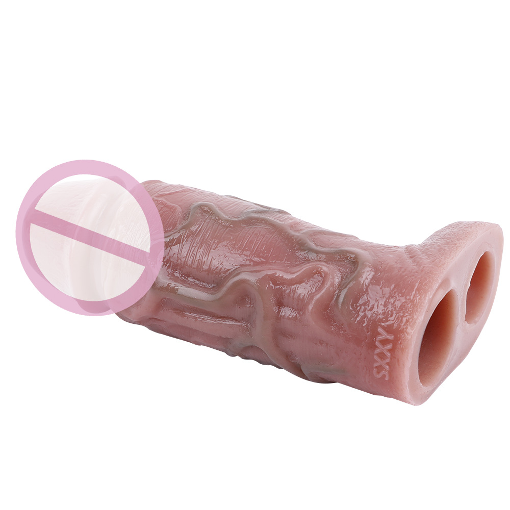 ปลอกเพิ่มขนาด ออกแบบสมจริงสูง เส้นเลือดโปน ระบบล็อกน้ำเชื้อ มีให้เลือกสีเนื้อและสีดำ วัสดุซิลิโคนแพลตินัม