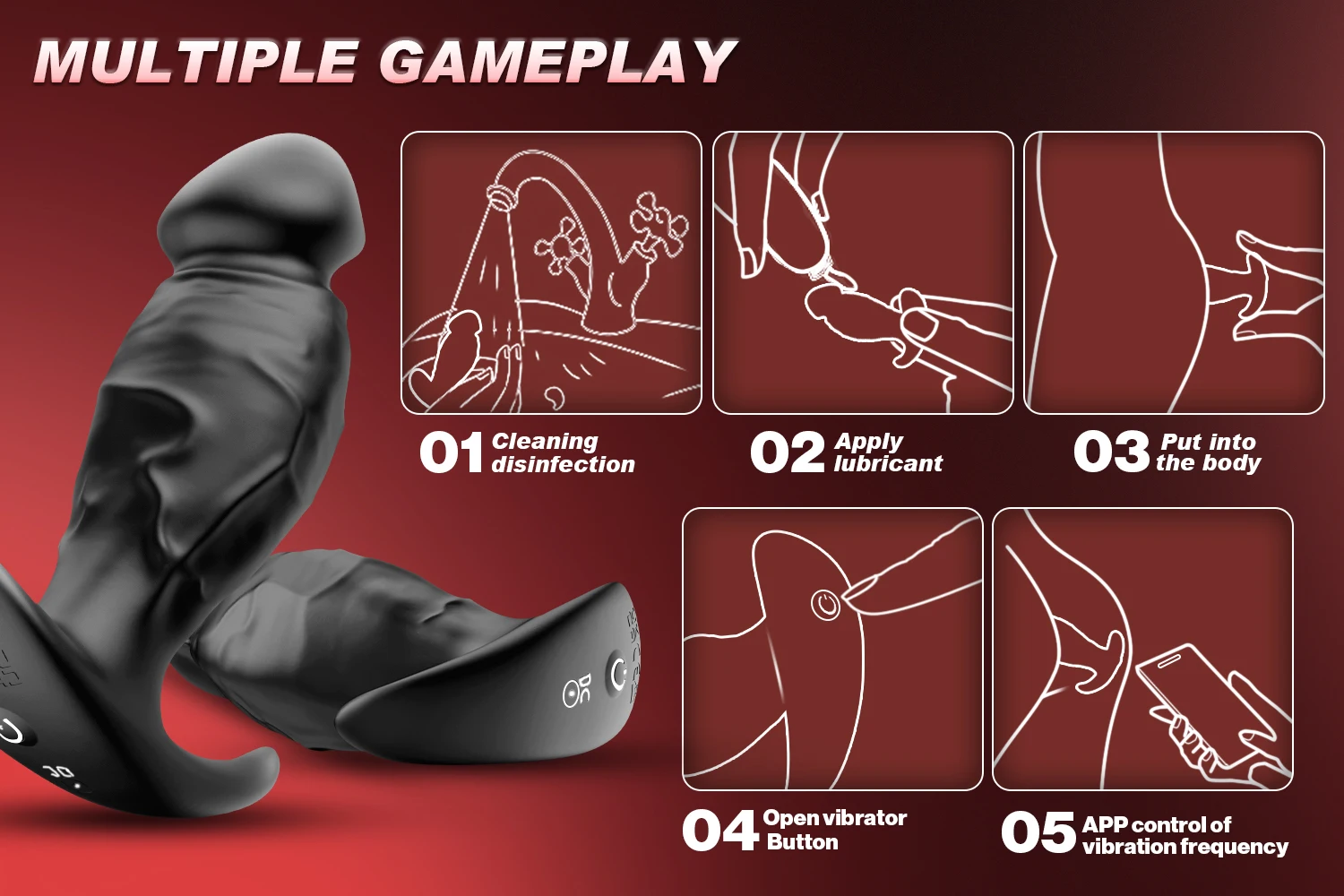 ปลั๊กทวาร+เครื่องนวดต่อมลูกหมาก มอเตอร์กำลังสูง ระบบสั่น 9 ความถี่ ออกแบบเลียนแบบอวัยวะเพศชาย ฟังก์ชั่นแอปพลิเคชัน