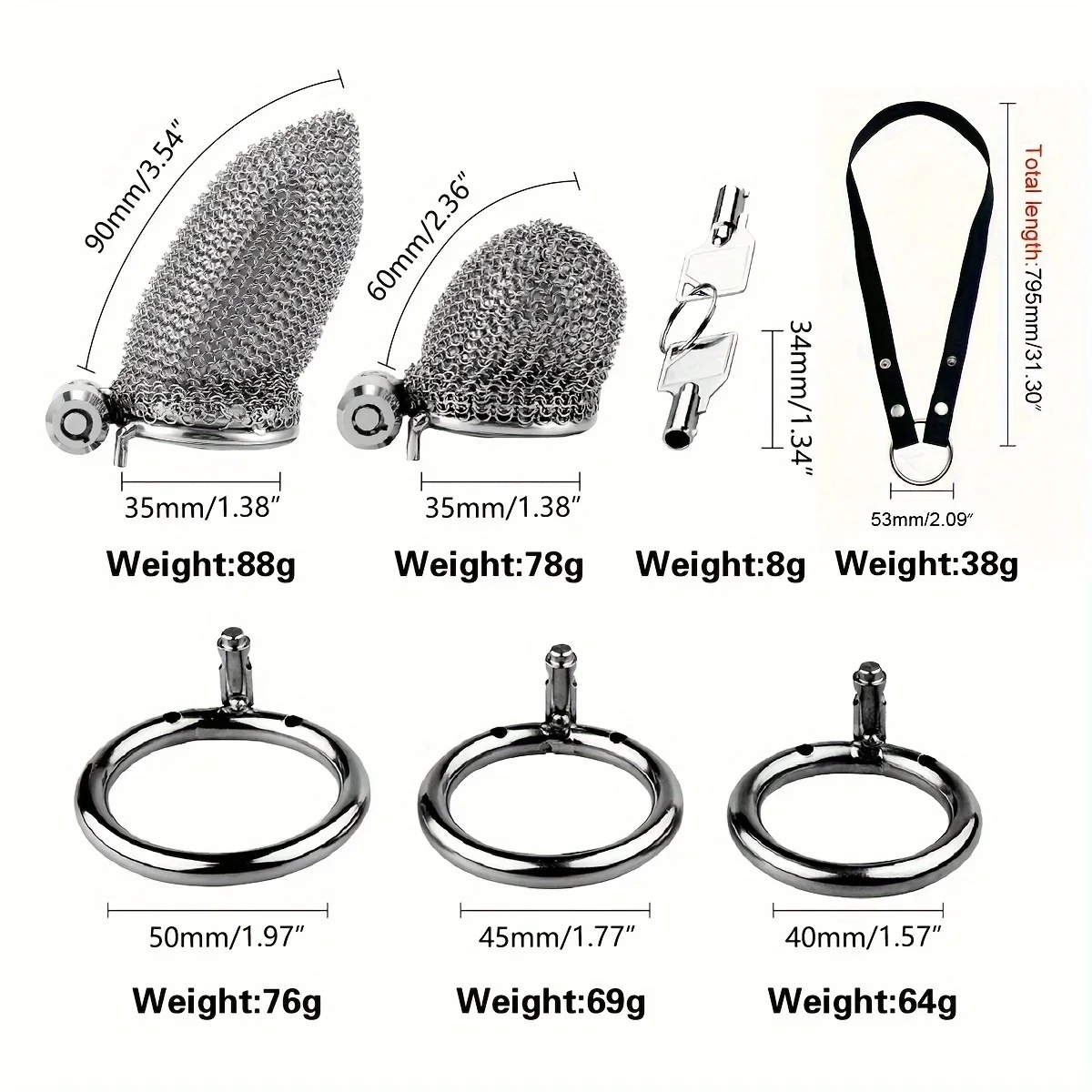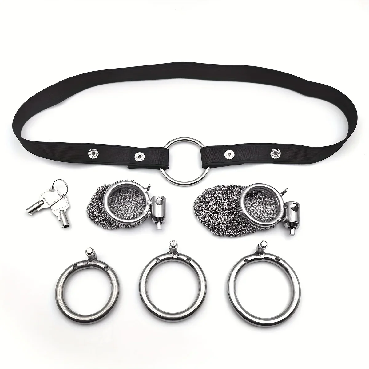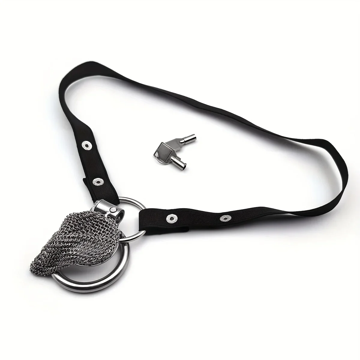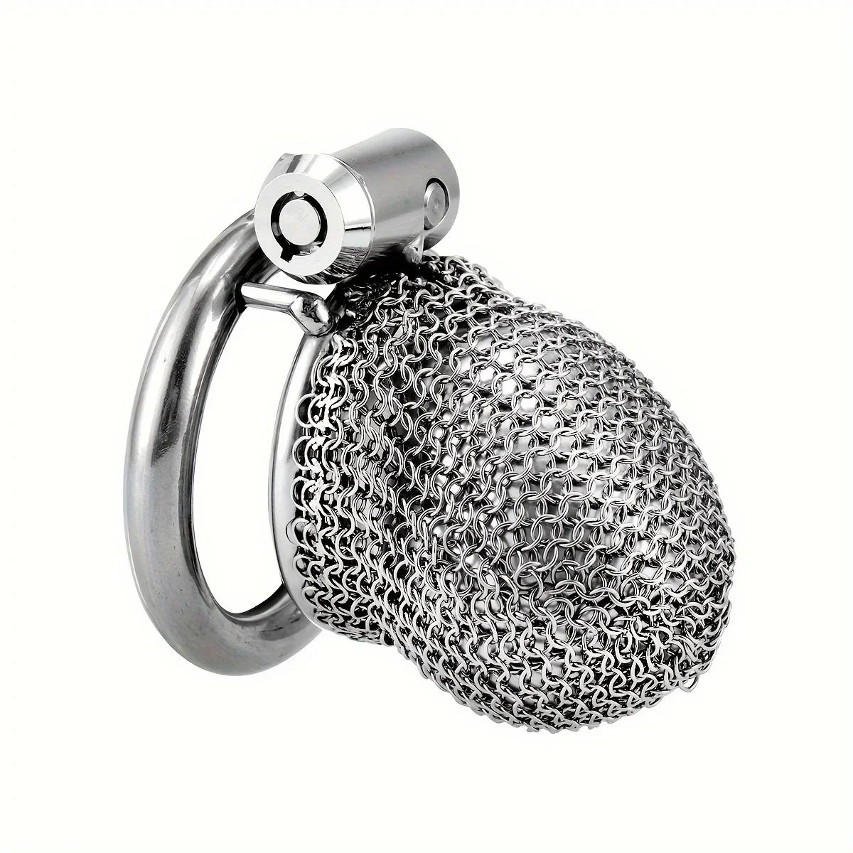 ล็อคอวัยวะเพศชาย มีลูกกุญแจในตัว โครงสร้างกรงแบบตาข่าย วัสดุสแตนเลส สวมใส่ได้