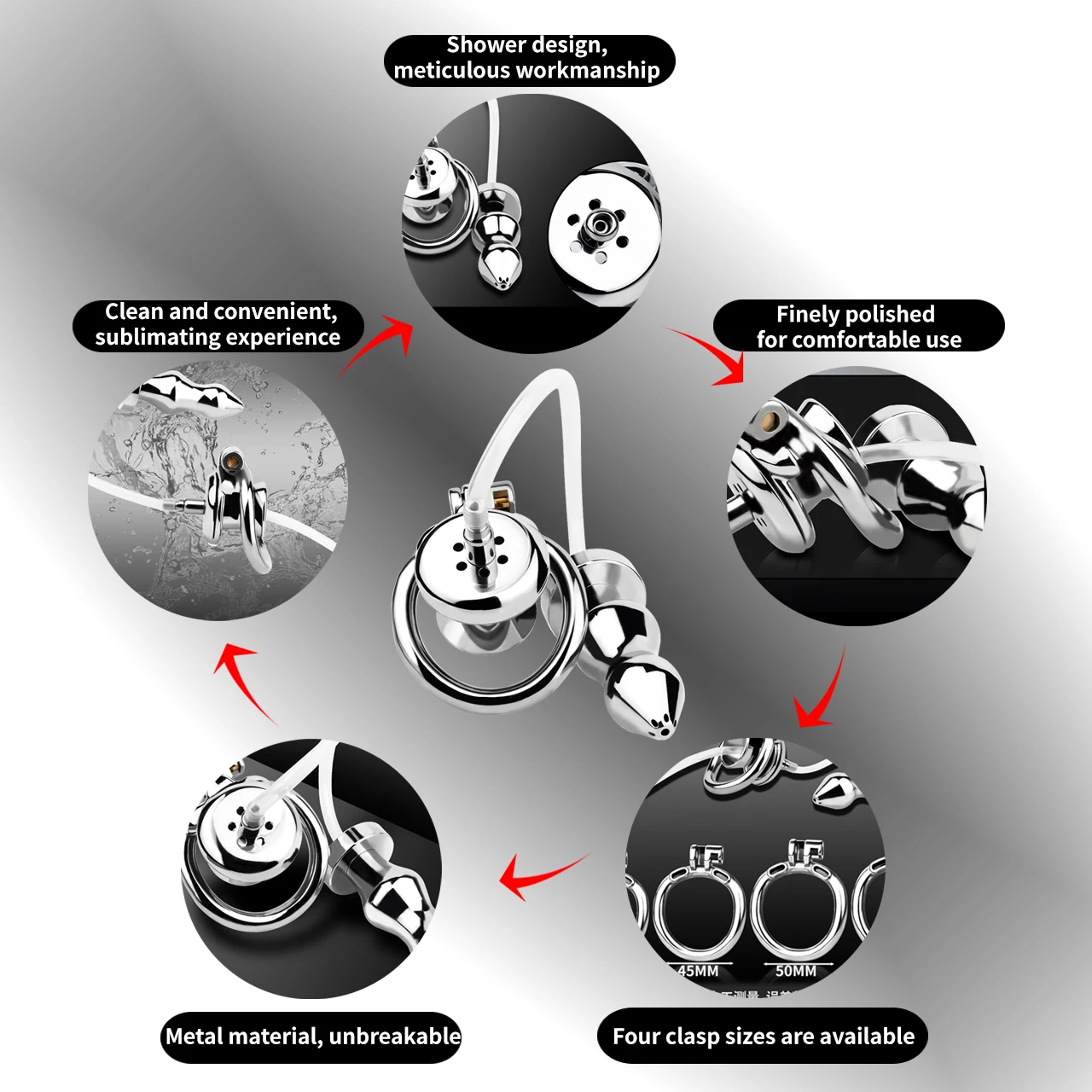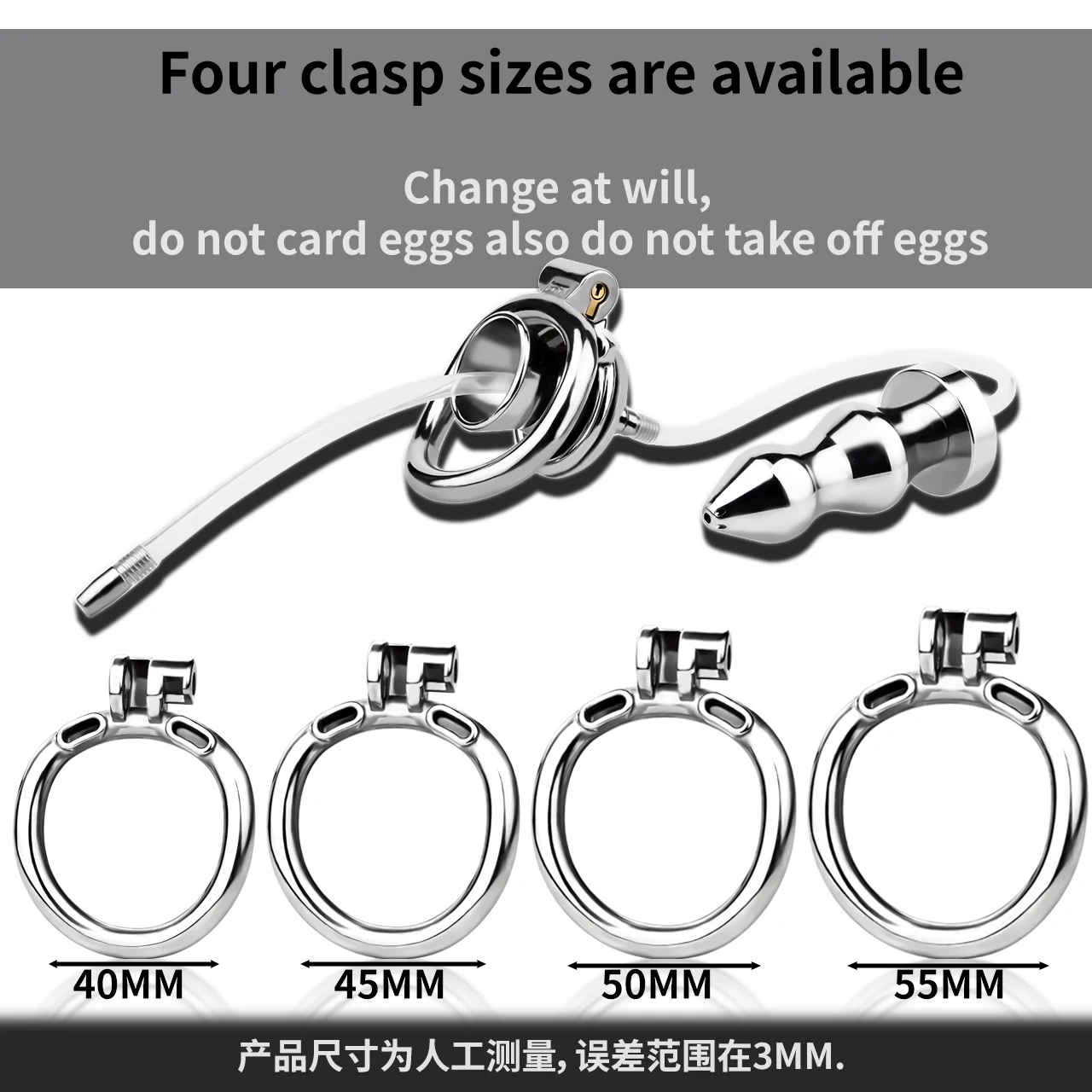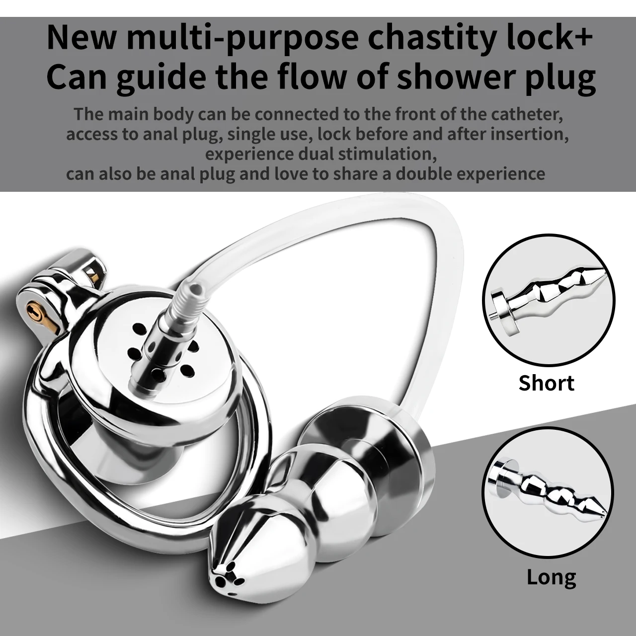ล็อคอวัยวะเพศชาย ออกแบบหัวฉีด 3 ขนาด ปลั๊กทวาร 2 แบบ สแตนเลสเกรด 304