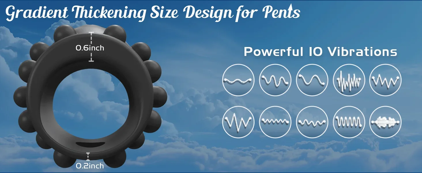 ห่วงรัดชะลอการหลั่ง Cock Ring 10 ความแรงสั่นสะเทือน ดีไซน์จุดนูน ควบคุมปุ่มเดียว ซิลิโคนยืดหยุ่นสูง IPX7
