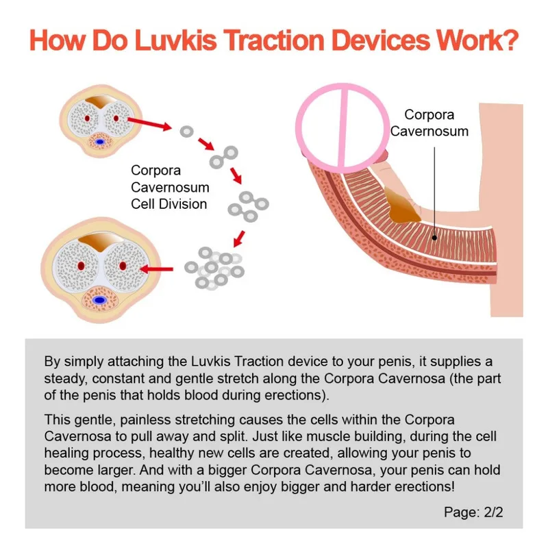ใช้แรงกดภายนอกเพื่อกระตุ้นการหลั่ง growth factor ในเซลล์คอร์ปัส คาเวอร์โนซัม ส่งผลให้เนื้อเยื่อขยายตัว ช่วยเพิ่มขนาดช่องคอร์ปัส คาเวอร์โนซัมและความยาวของเอ็น ทำให้องคชาตใหญ่ขึ้น