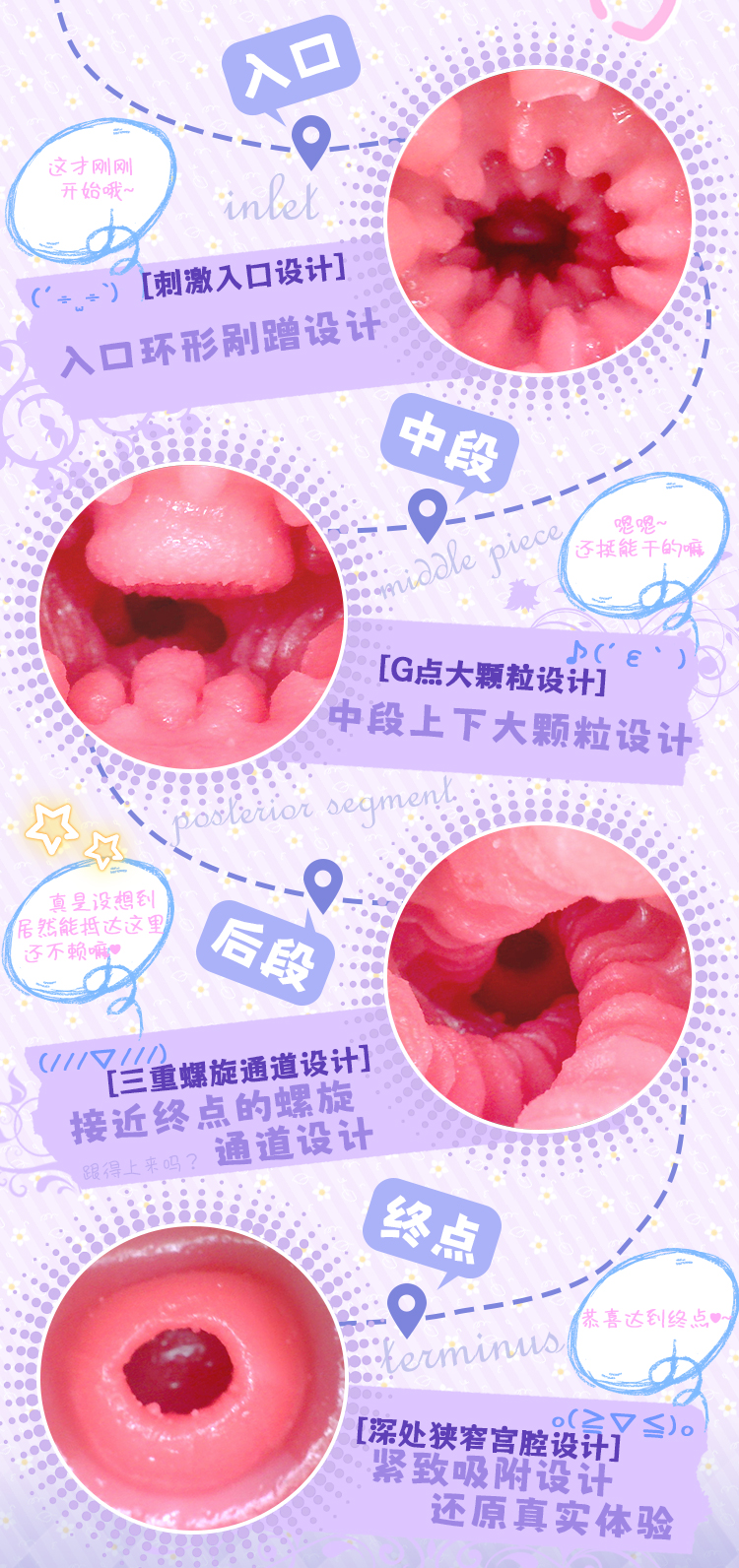 ทางคู่เสมือนจริง เนื้อในสีชมพูเนียนนุ่ม เนื้อสัมผัสเนียนละเอียดโอบล้อมนุ่มสบาย ตุ่มเสมือนจริงและเส้นเลือดกระจายทั่ว