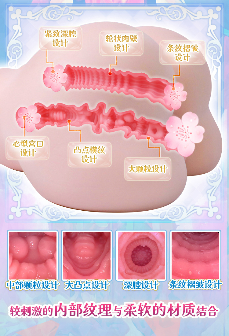 ทางคู่เสมือนจริง เนื้อในสีชมพูเนียนนุ่ม เนื้อสัมผัสเม็ดกลมโอบล้อมนุ่มสบาย ตุ่มเสมือนจริงและเส้นเลือดกระจายทั่ว