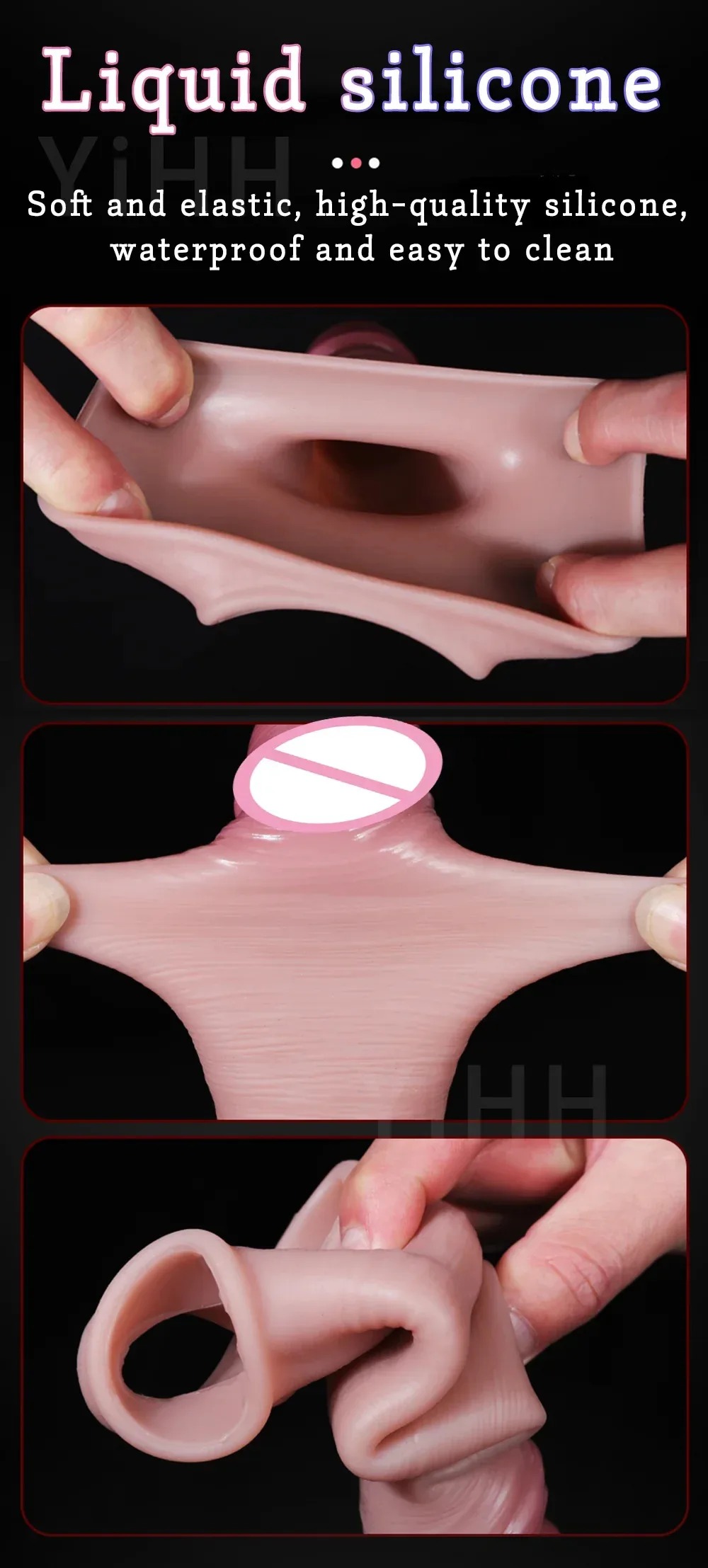 ปลอกเพิ่มขนาด ออกแบบเลียนแบบธรรมชาติ วัสดุซิลิโคนเหลว ระบบล็อกน้ำเชื้อ